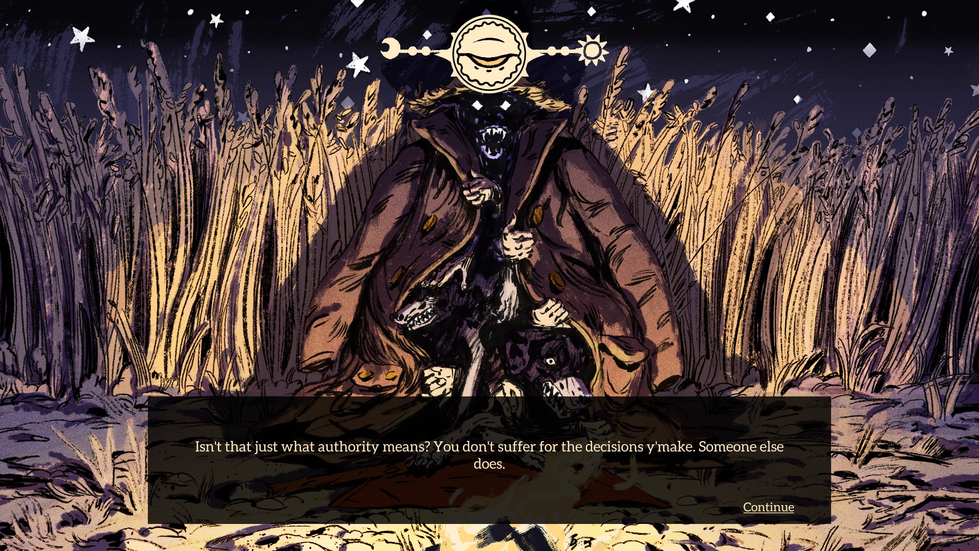 У грі є кілька способів подорожі, показники здоров’я і втоми, і навіть змога заробляти гроші. Але це все присутнє формально і примітивно. Абсолютно очевидно, що головний і єдиний смисл гри – збирати історії, а не виживати, планувати маршрути чи шукати підробітки. Ігрові елементи прямо просяться, щоб їх або ускладнили і зробили з цієї гри таки гру, або геть прибрали. Однак все це на практиці напружує помітно менше, ніж може здаватися на перший погляд. Якщо вам сподобаються тутешні байки біля багаття, то рудиментарність ігроладу навряд чи зіпсує настрій, а музика його підтримає.