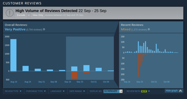 На графіку видно, що в період появи оголошення про закриття компанії ТТG, рейтинг The Walking Dead: The Final Season значно провалився