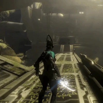 Перший – переміщення. Система руху як така по-своєму унікальна і нагадує знову ж таки аніме. Ми змиваємо в повітря, пролітаємо 10 метрів, відштовхуємося від стіни, змінюємо напрям, проносимося на триметровій висоті над ворожими солдатами, торкаємося підлоги лише на мить і знову в повітря. Досвідчені гравці у Warframe не бігають рівнями. Вони літають.