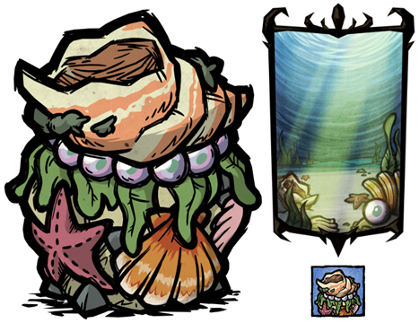 Океаном плавають банки з посланнями. Послання ведуть нас на невеликий фрагмент Місячного Острова, на якому живе стара Крабиха-Відлюдниця – перша у “Don’t Starve Together” NPC, тобто неігровий персонаж, чий авторитет ми зможемо завоювати, виконуючи завдання.