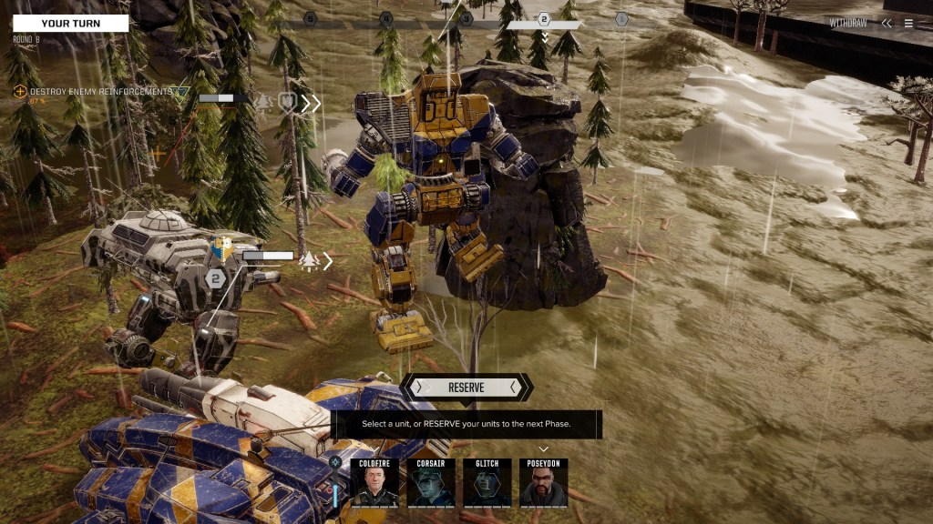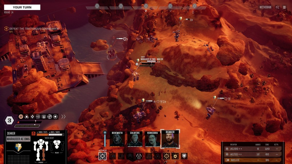 Наступну місію беру зі складністю три з половиною черепочки. Це “замовне вбивство” – маю знищити небезпечну ціль, командувача-зрадника. У таких місіях “ціль” часто чекає в чомусь важкому, у неї є охорона, а ще до охорони часто “висилають підмогу” – до цього я морально готовий. Несподіванкою стало те, що охорону на мапі створило впритул з підмогою, в яку входив ще один повний загін, а також самою ціллю. З цих дев’яти Мехів супротивників двоє були рівно тих самих моделей, що і двоє мої.
