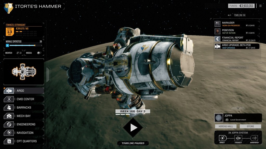 Ми живемо у реалістичному світі, в якому за все треба платити: ремонт і обслуговування Мехів, зарплатня пілотів, обслуговування систем корабля. Банкрутство компанії означатиме для нас кінець.