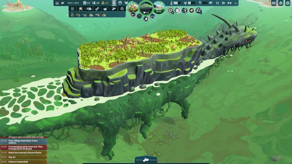 Мені подобається, що невдалі рішення у цій грі, хоч і спричиняють труднощі, зазвичай не призводять до повного краху і необхідності перезавантажувати збереження годинної давності. Принаймні у сюжетній кампанії, гра вчить, що проблеми можна пережити і просто краще підготуватися наступного разу. Онбу втомився плисти – так, він трохи виснажить своє здоров’я, але ми його пізніше полікуємо! Закінчилася чиста вода для ферм – можна фільтрувати солону/брудну, нема фільтра – значить поселенці якийсь час поїдять ягоди або рибу.