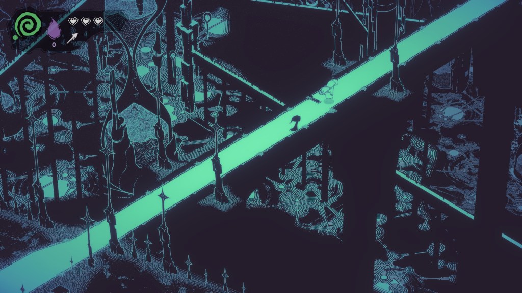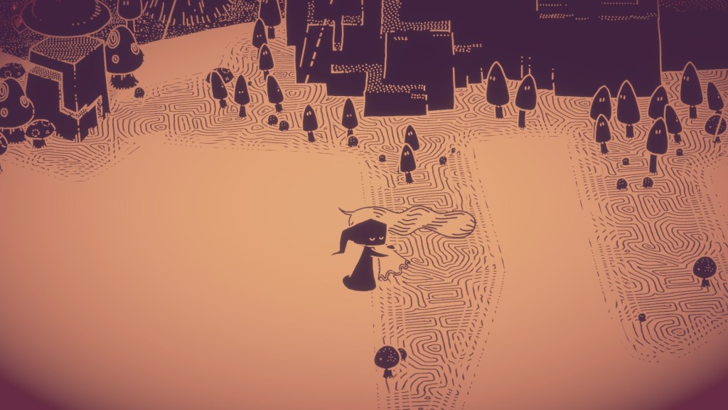 Hauntii – це атмосфера. Гра вражає послідовним візуальним стилем. За дитячої мальовки об’єктів і персонажів, за мінімалізму кольорової схеми, у Hauntii спостерігається сильний art direction: зміна перспективи при потраплянні у “Вічне Місто” дає відчуття простору і глибини, яке не завжди побачиш у іграх-блокбастерах. Відтінки у кожному з регіонів потойбічного світу чудово передають атмосферу, яка підтримується іноді веселеньким, іноді меланхолійним саундтреком.