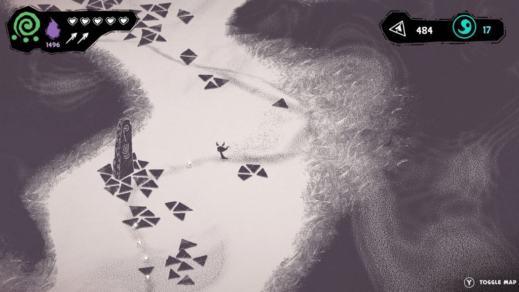 Втім, це не значить, що у Hauntii немає випробувань. Битви з босами (та міні-босами) змушують трошки помізкувати. Вони дуже творчо зроблені, ніби й не зовсім битви – радше шаради. І драматизму у них вистачає! Штурм пісчаного корабля удєлує по динаміці усі погоні “Шаленого Макса”.